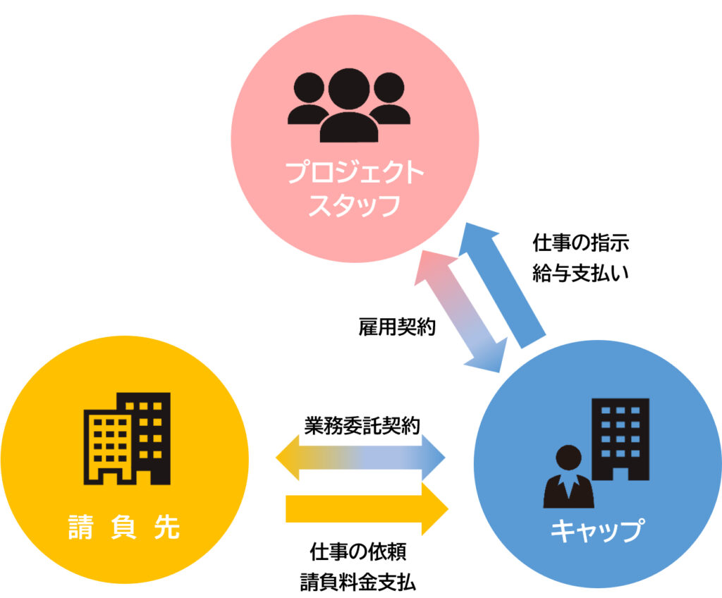 プロジェクトスタッフとは、キャップが地方自治体や企業から請け負っている業務を遂行するチームの一員として仕事をする働き方です。